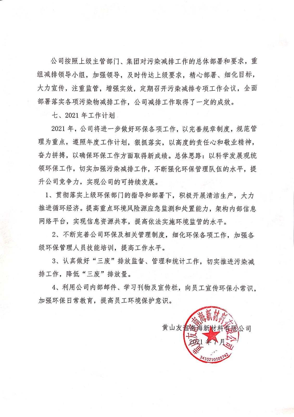 現(xiàn)將黃山友誼南海新材料有限公司2020年度環(huán)保工作總結(jié)的公示公布如下: